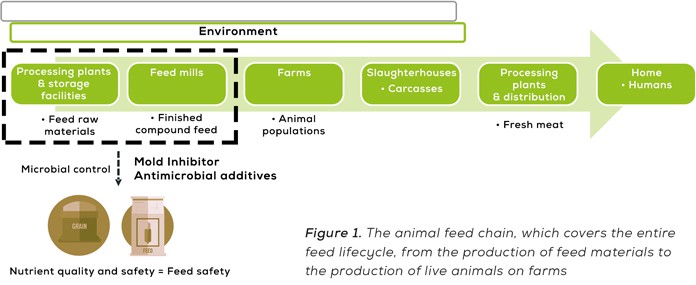 Microbial degradation is a continual process that begins when feed ingredients are used, continues during production and storage, and only ends once the feed is consumed (see Figure 1). These key milestones in the life of the feed are where nutrient quality and safety can decline. Acting during these milestones ensures high-quality, safe feed.