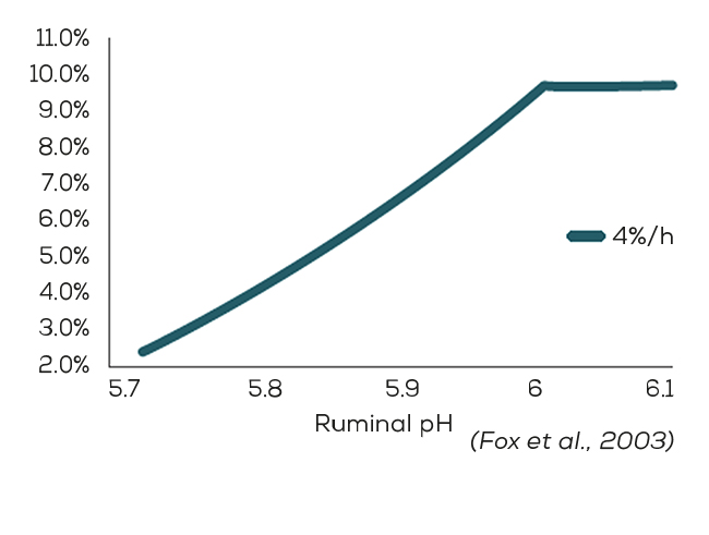 Hence, any diet that can alter the pH can negatively impact fibrolytic species and result in reduced fiber degradation. This decreased pH can further lead to subacute rumen acidosis (SARA).