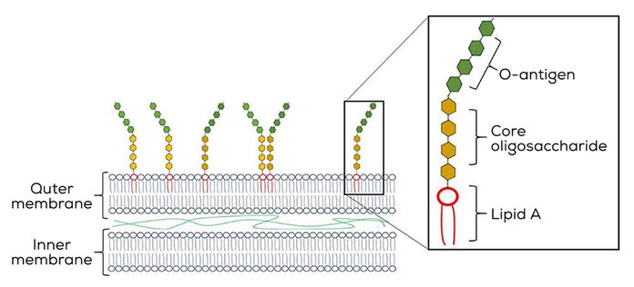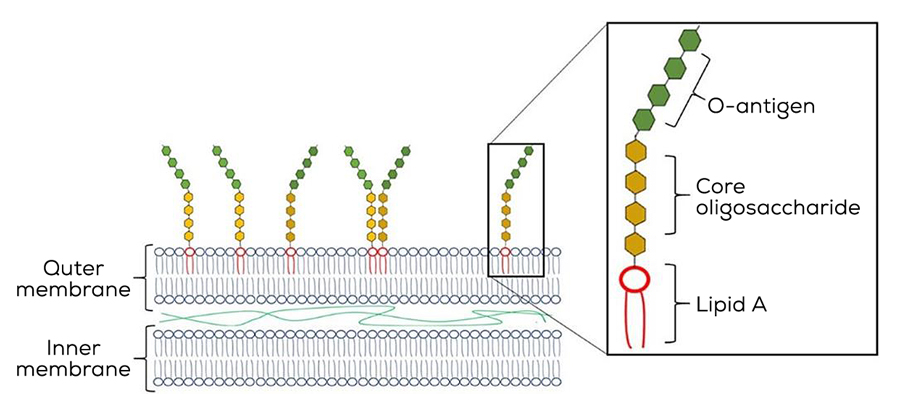 Currently, SINS is believed to be caused by a combination of factors, with one endogenous factor expected to be exposure to endotoxins. Normally present in the gastrointestinal tract (GIT) of swine, endotoxins are toxic substances found in the cell walls of gram-negative bacteria (Figure 1). Gram-negative bacteria are part of the normal gastrointestinal microbiota of healthy animals, however, under certain stress conditions or production phases (change of diets) their presence in the gastrointestinal tract is increased. With a higher concentration of gram-negative bacteria, there is an increase in the presence of endotoxins (also known as lipopolysaccharides or LPS) released into the body when the bacteria die or the cell walls are damaged.