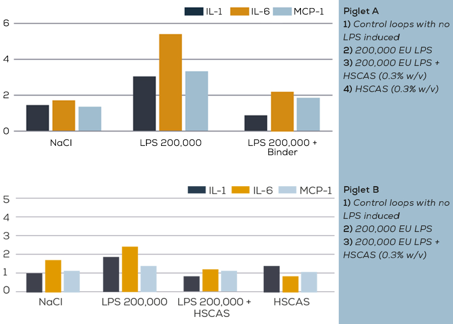 Since there is evidence of the association of SINS with the presence of endotoxins, reducing the impact of endotoxins in pigs may contribute to reducing the incidence and virulence of SINS. Studies performed at the University of Ghent have demonstrated the capacity of some toxin binders to capture endotoxins in the gastrointestinal tract, thus stopping their action in the intestinal epithelium and limiting adsorption to the bloodstream. The study demonstrated the effect of the toxin binder in reducing the production of inflammatory cytokines. Precisely the same mediators associated with SINS as described before.