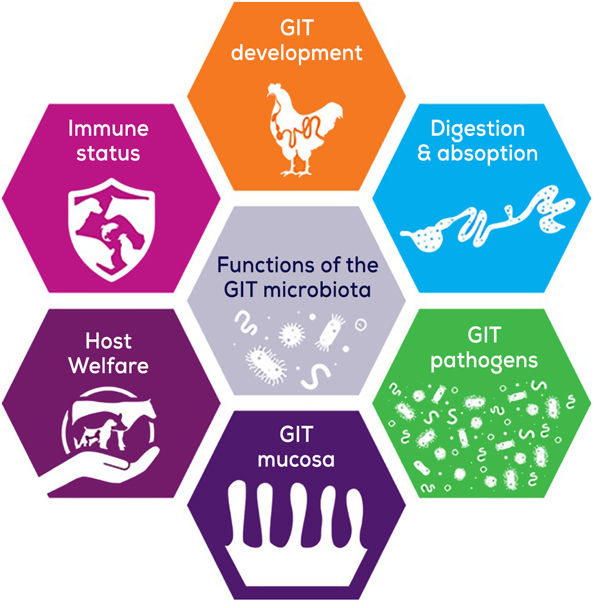 Consequently, dietary manipulation of the GIT microbiota composition represents an attractive tool to prevent intestinal issues and to promote animal performance. Nutritional interventions should be designed to promote conditions in the GIT that would create and maintain a balance between the host and the GIT microbiota, and to prevent disturbance of the structure and function of the GIT.
